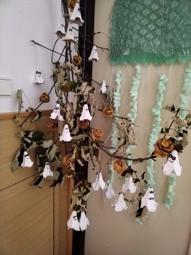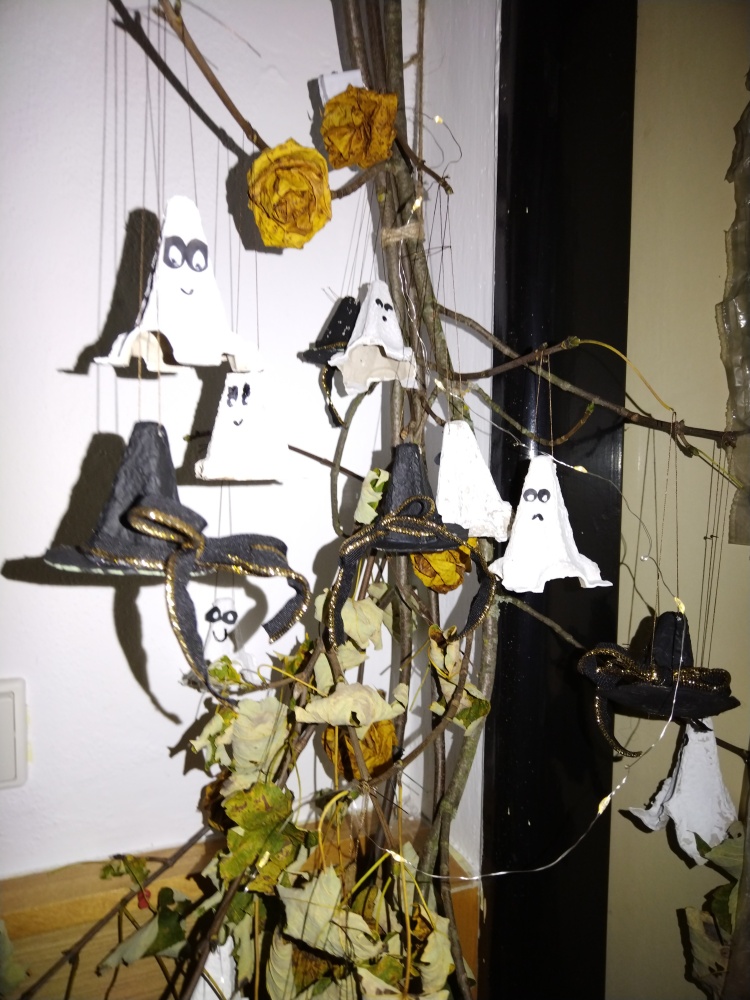 Halloweenské doplňky z obalů na vajíčka