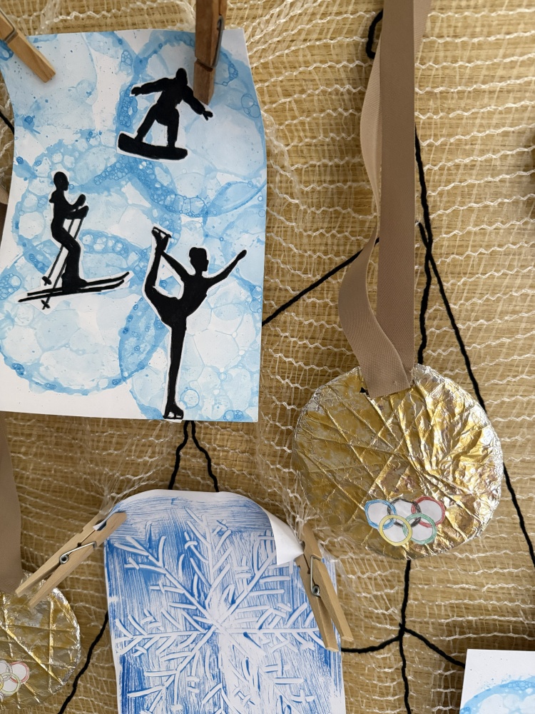 Olympijské sporty na bublinkatém papíru, brusle pro Metoděje, snowboardová prkna pro naše závodnice a medaile !!!!! To všechno jsme vyrobili!