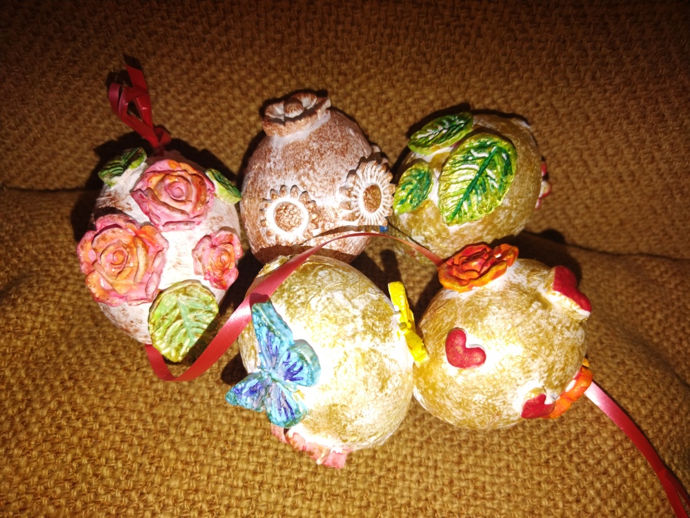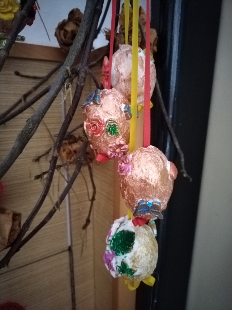 Kraslice trochu jinak, pomocí toaletního papíru a samotvrdnoucí hmoty jsou i trošku nerozbitné ...