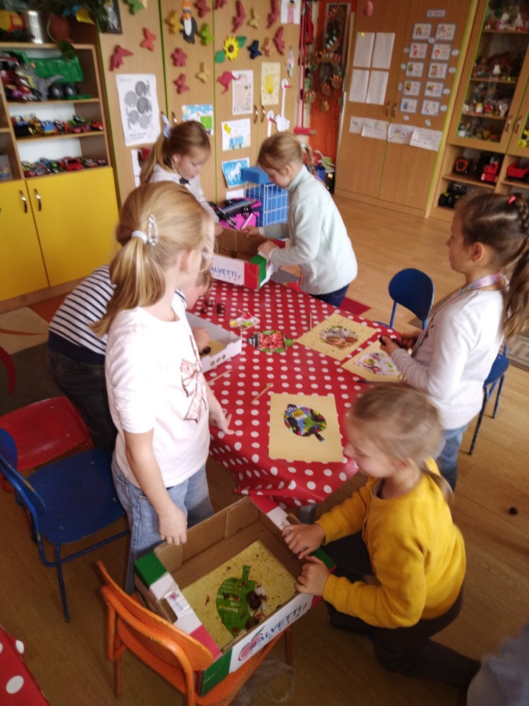 Kašany nám za pomocí krabice pomohly vymalovat zajímavé vzory ...