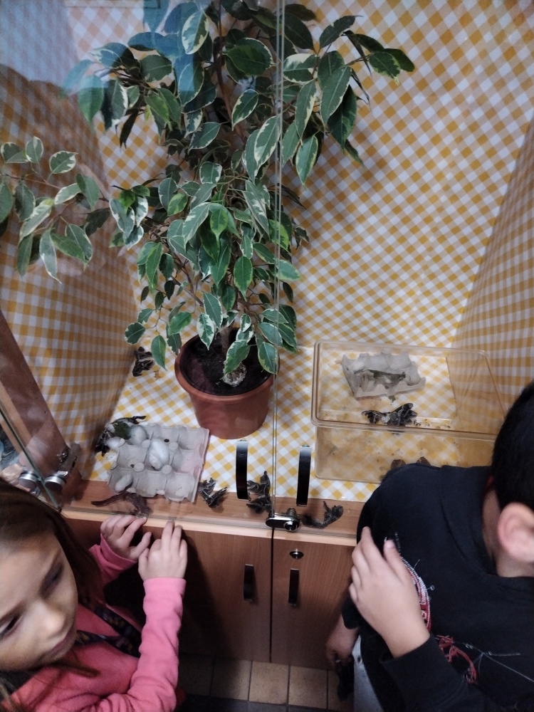 Pan učitel nám ukázal všechny motýly co se jim v 7.třídě narodily a seznámil s jejich chovem.