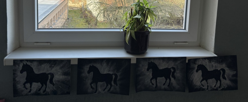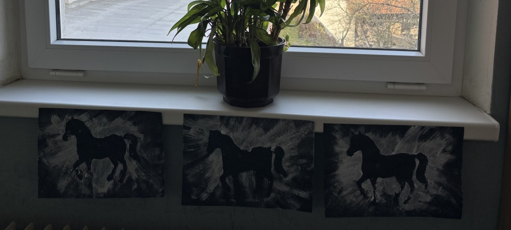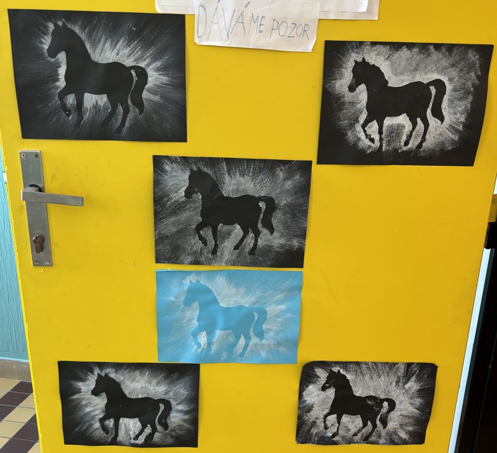 Děti z 2. oddělení ŠD, vytvořily pomocí bílé barvy, moc pěkné stádo koníků ...
