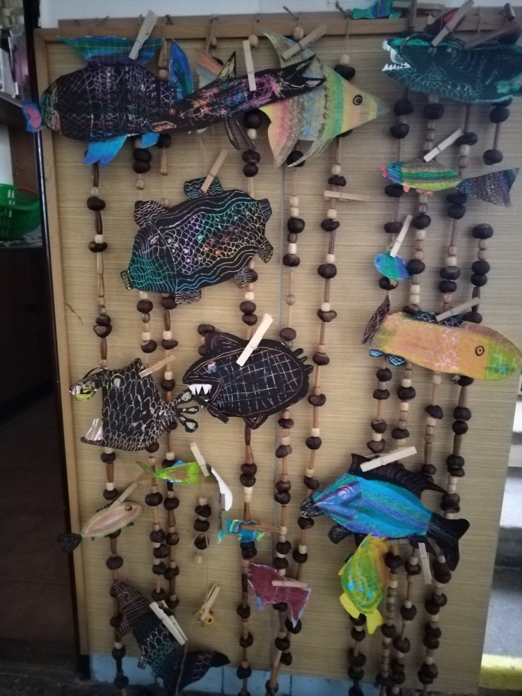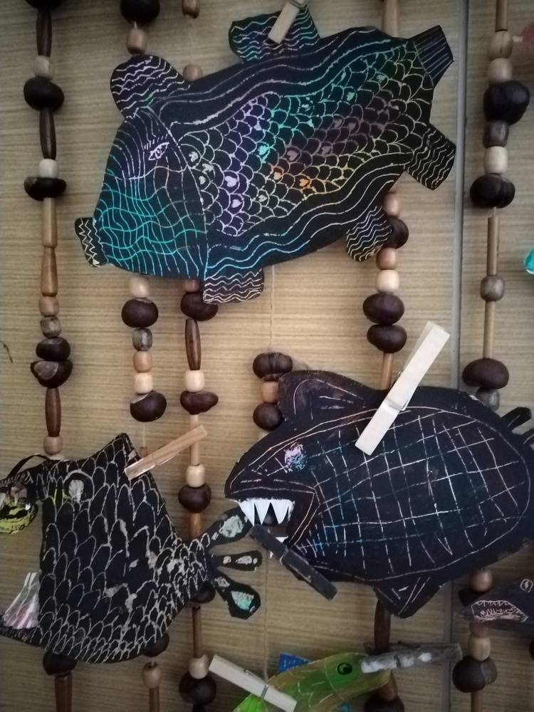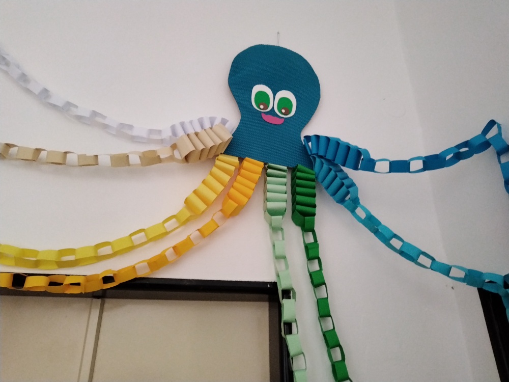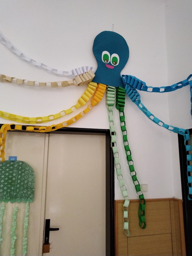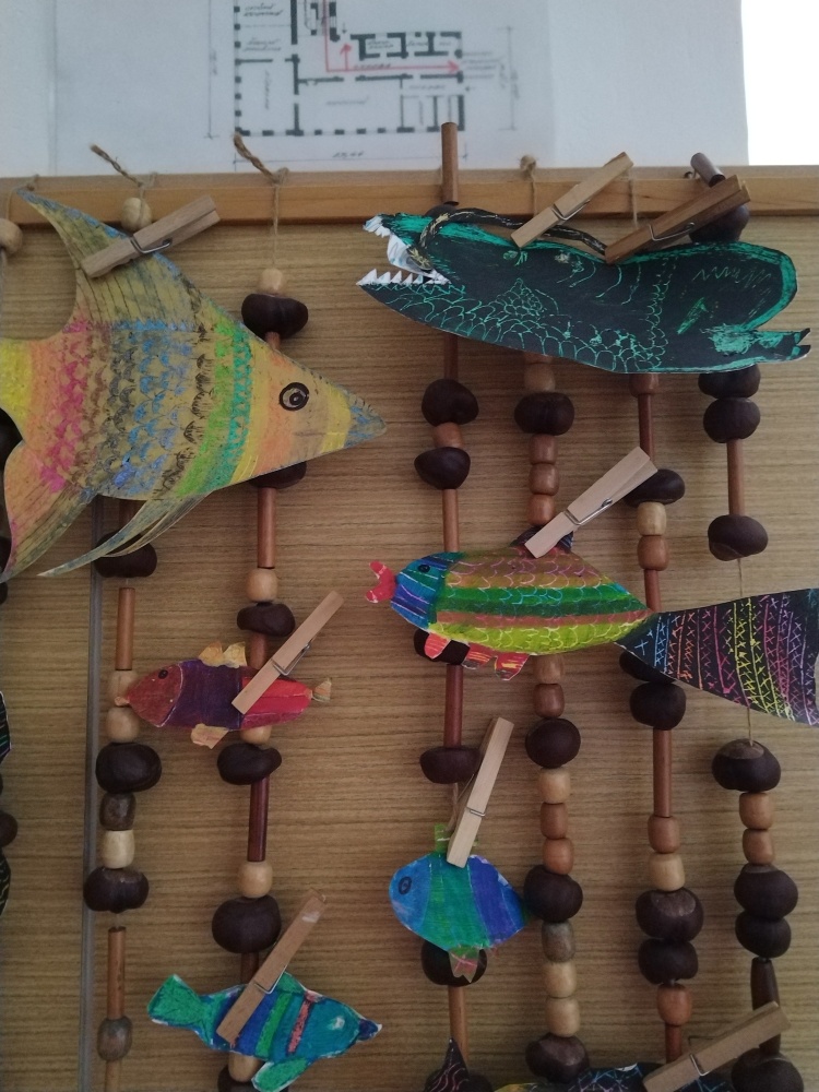 Naše výrobky na téma moře nám ozdobily prostor před školní družinou ...