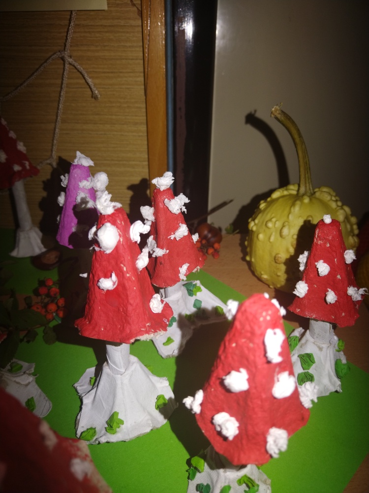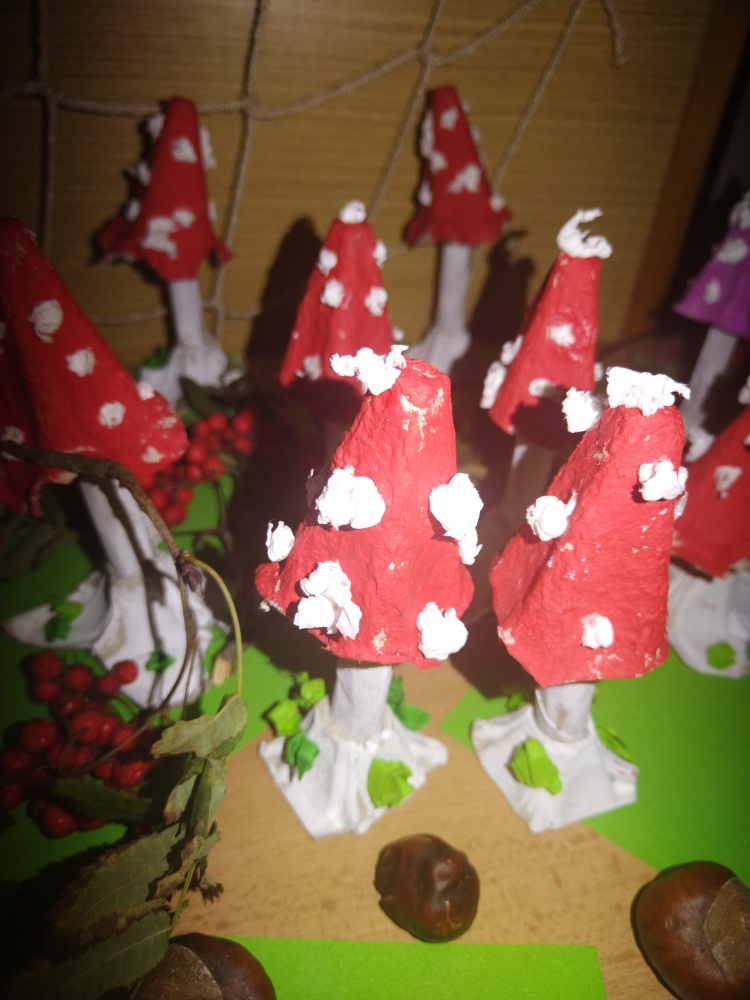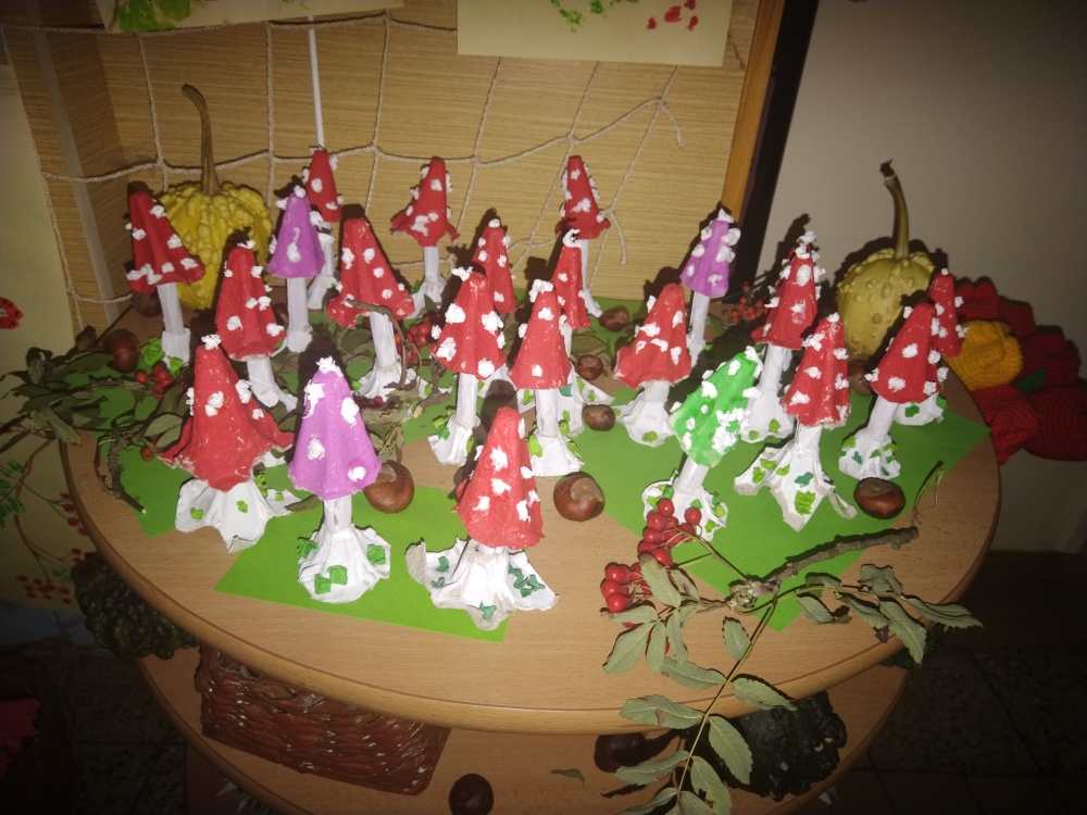 Z kartonů od vajíček jsme vyrobili poslední mochomůrky ...