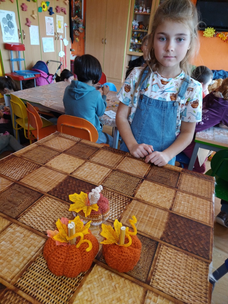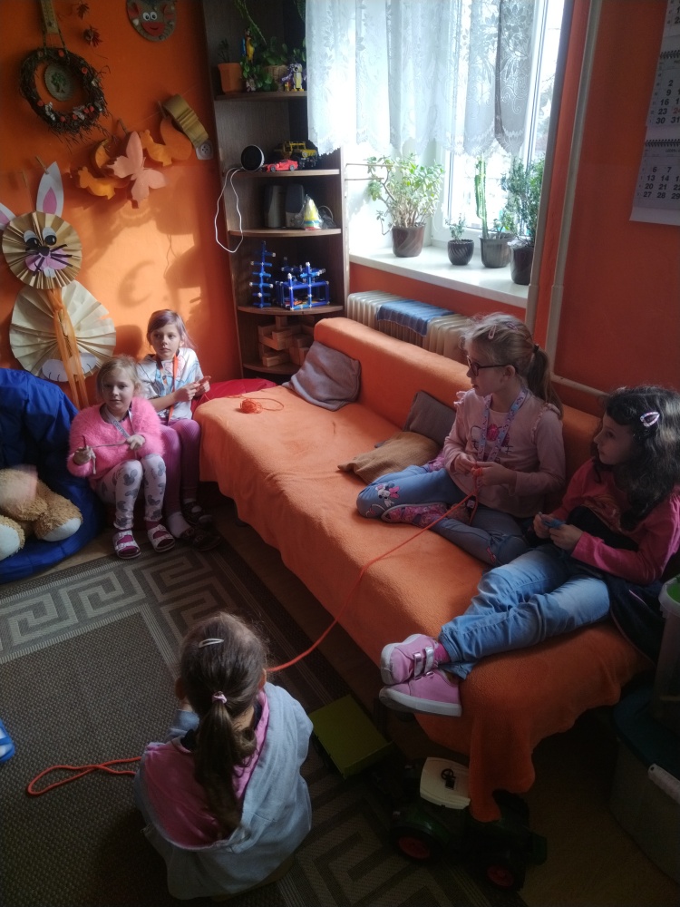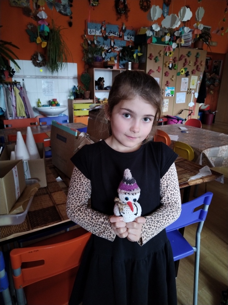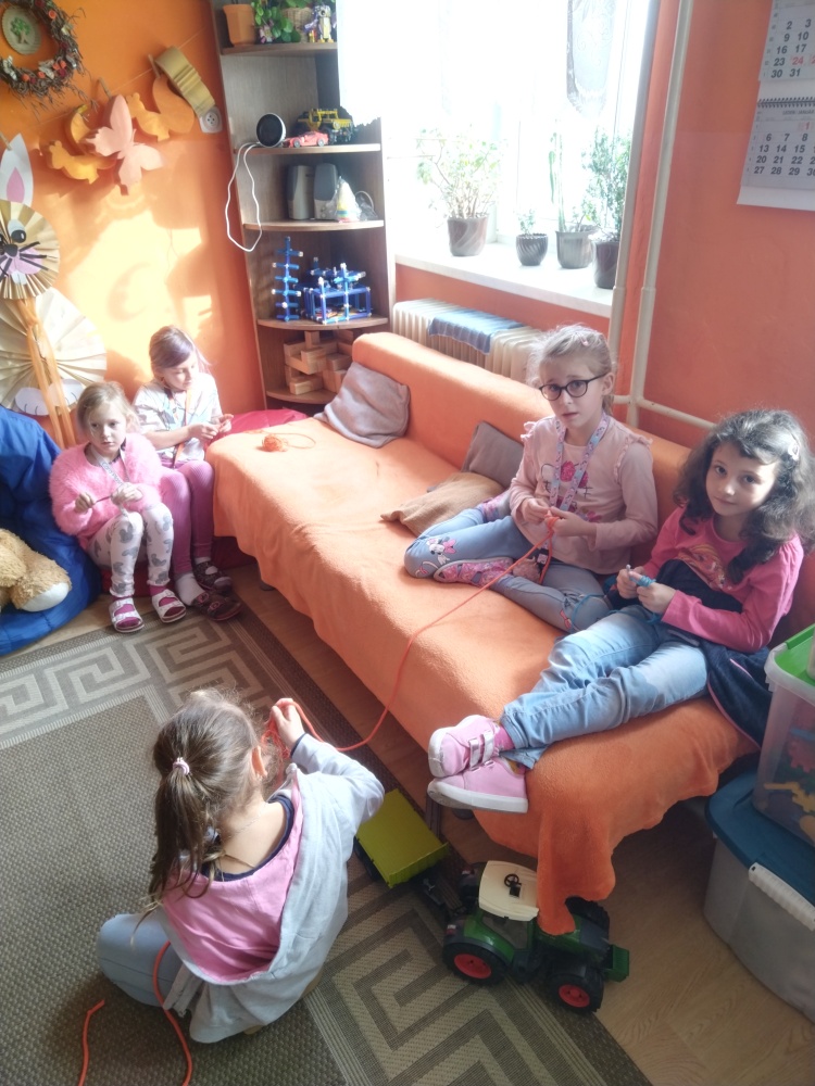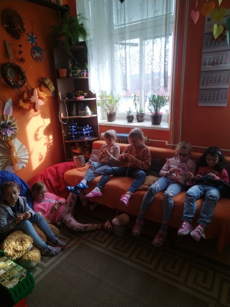 Prvňačky se snaží následovat zkušenější háčkařky ...